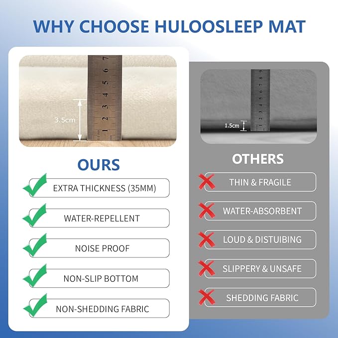 - 【FITS TO MULTIPLE OCCASION】:This versatile mat works as a yoga mat, tatami rug, and is compatible with floor heating. It provides a cozy spot for adults to relax, doubles as a pet-friendly cushion, and absorbs sound to reduce noise. With 35mm thickness, it enhances your bedroom or living room. Unlike typical plastic play mats, the HulooSleep Crawling Mat blends seamlessly with home decor, offering both functionality and elegance in one.