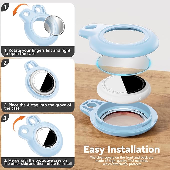 - Easy Installation: No complicated operation is required, and you can fix AirTags in the Holder in a few easy steps;[Tips]: The specific installation steps can be seen in the picture; The protective cover of the Apple Airtags keychain will not affect the touch screen and shield the signal; Whether it is finding lost items or remote tracking, it can be easily achieved