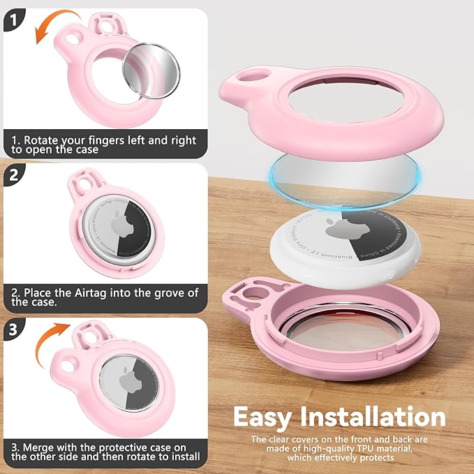 - Easy Installation: No complicated operation is required, and you can fix AirTags in the Holder in a few easy steps;[Tips]: The specific installation steps can be seen in the picture; The protective cover of the Apple Airtags keychain will not affect the touch screen and shield the signal; Whether it is finding lost items or remote tracking, it can be easily achieved