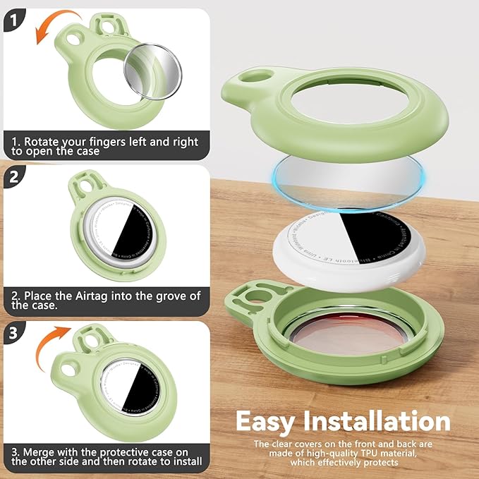 - Easy Installation: No complicated operation is required, and you can fix AirTags in the Holder in a few easy steps;[Tips]: The specific installation steps can be seen in the picture; The protective cover of the Apple Airtags keychain will not affect the touch screen and shield the signal; Whether it is finding lost items or remote tracking, it can be easily achieved