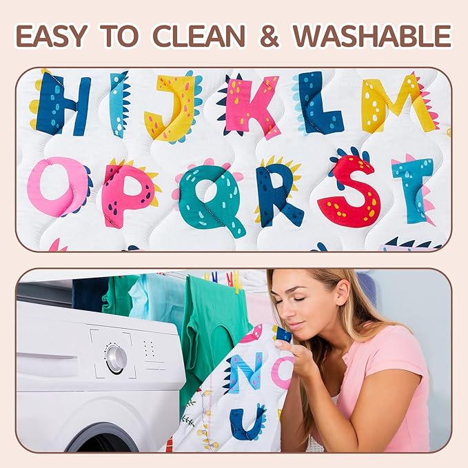 - Developmental Design Meets Playful Learning - Featuring vibrant dinosaurs and colorful alphabet patterns, this engaging playmat combines fun with early education. The high-contrast designs stimulate visual development while sparking curiosity about letters and prehistoric creatures. Perfect for growing minds, the playful graphics encourage sensory exploration, language discovery, and cognitive growth during tummy time and play. The educational themes blend seamlessly with modern nursery decor, creating an inspiring space for your little explorer's developmental journey.