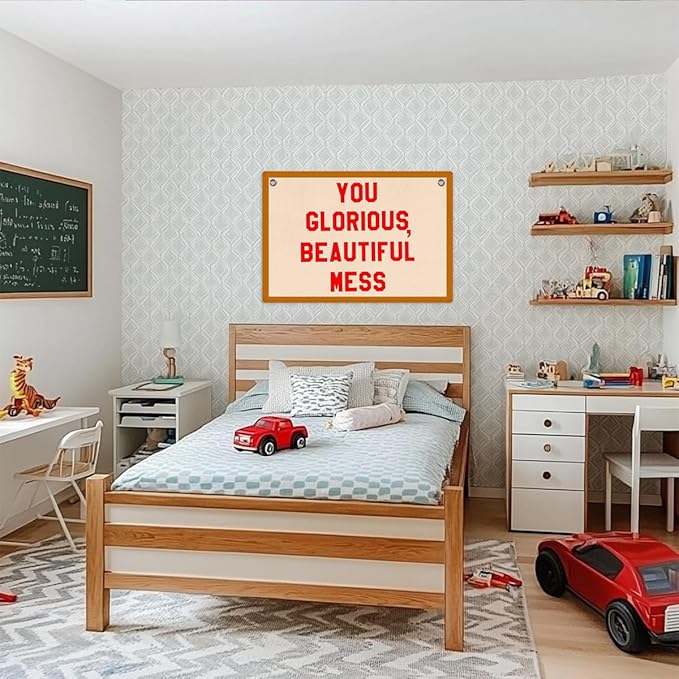 Funny Beautiful Mess Banner Self Care Wall Hanging, Self Love Wall Decor, Funny Gifts Vintage Felt Banner Flag, Wall Flag Living Room Bedroom Office Decor, Banner for Room