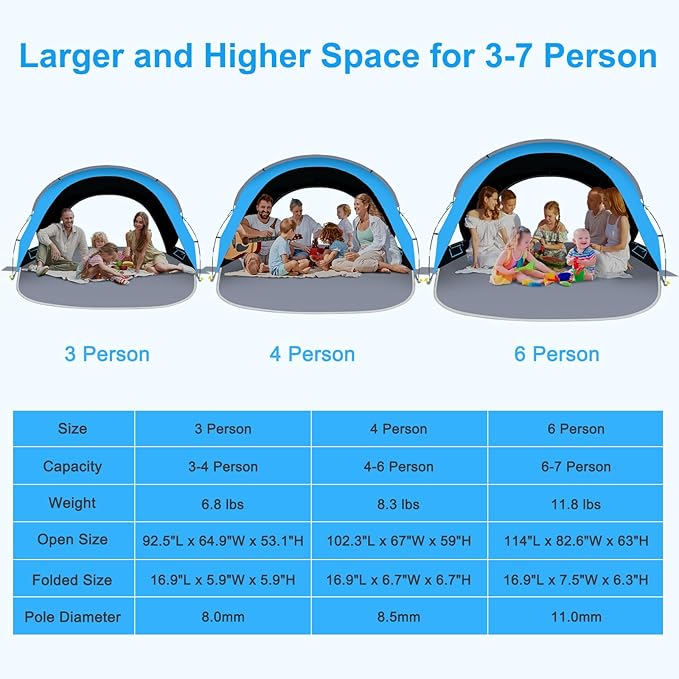 - UPF99+ Protection: Featuring dark-shelter fabric, this beach shade is engineered with superior Anti-UV sun protection, effectively blocking at less 99% of harmful UV rays, ensuring you and your family enjoy comfortable and cool days at the beach
