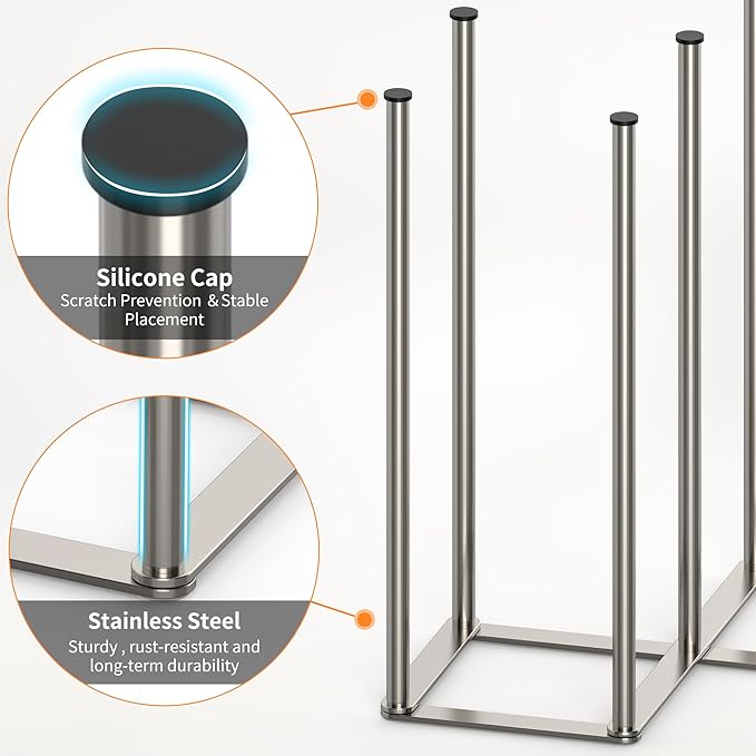 - 【Scratch-Resistant Protection】 Featuring seven silicone caps on top of the stainless steel poles, this drying rack securely holds bottles, cups, jars, and other kitchen items while preventing scratches.