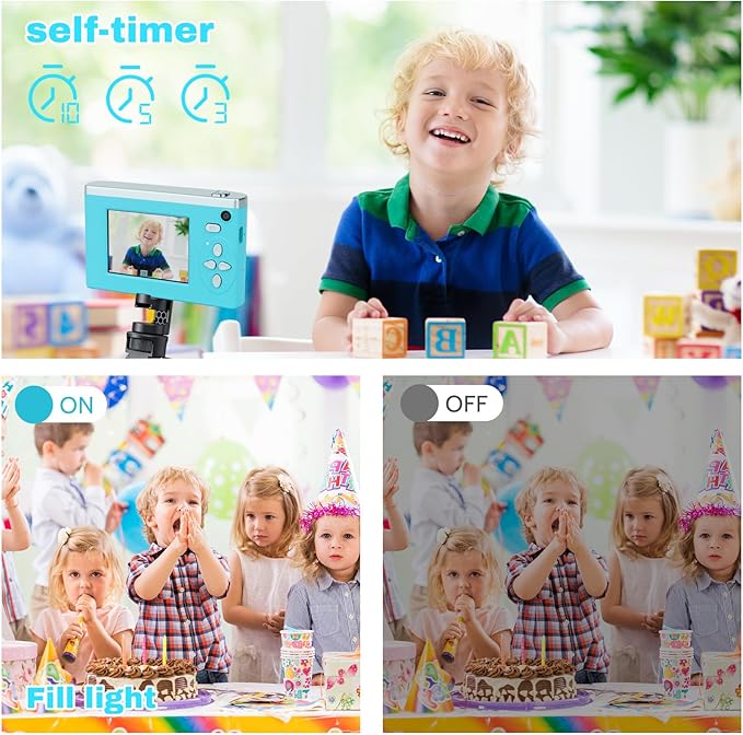 - 【Kid-Friendly Timed Shooting Mode】 Spark creativity with a simple timed shooting function, letting young photographers capture selfies, group photos, or dynamic action shots with ease