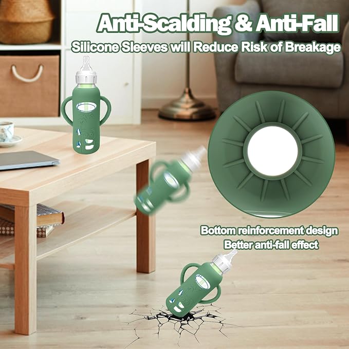 - Unique Designed for Baby Bottles - The silicone sleeves for Dr. Brown's Baby Bottles can against drop down,bumps and scratches. These are a must essential product for using glass baby bottles. They provide a more sturdy protection for glass baby bottle from breaking if dropped, which also unique handle design shape make it easier to grip and hold