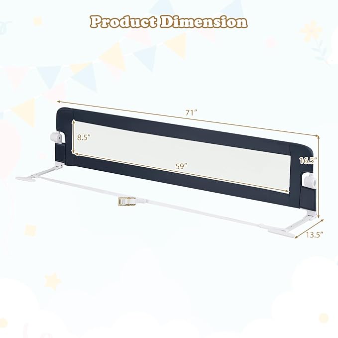 - Protect Your Baby's Safety: These 2 pack extra-long bed rails are 71 inches long each for added safety. Also When your kids sleep alone at night, they can provide them with the best protection and safe sleeping environment. They are your kid's safety guard, so you don't have to worry about your baby falling off the bed.