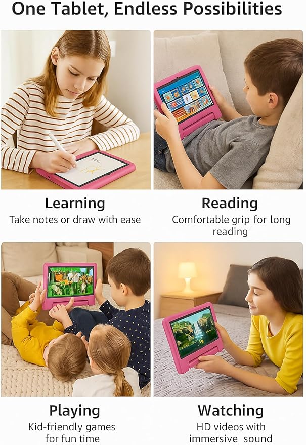 • 【Durable Multi-Angle Stand Case for Kids Tablets】 This child-safe silicone sleeve offers 360° protection from drops, spills, and daily wear. The flexible yet shock-absorbent design weighs less than 6oz, keeping tablets portable for little hands. Its convertible kickstand props screens at 3 angles for hands-free learning, movie time, or art sessions. Non-toxic, wipe-clean materials resist crumbs and crayon marks – perfect for ages 3-12