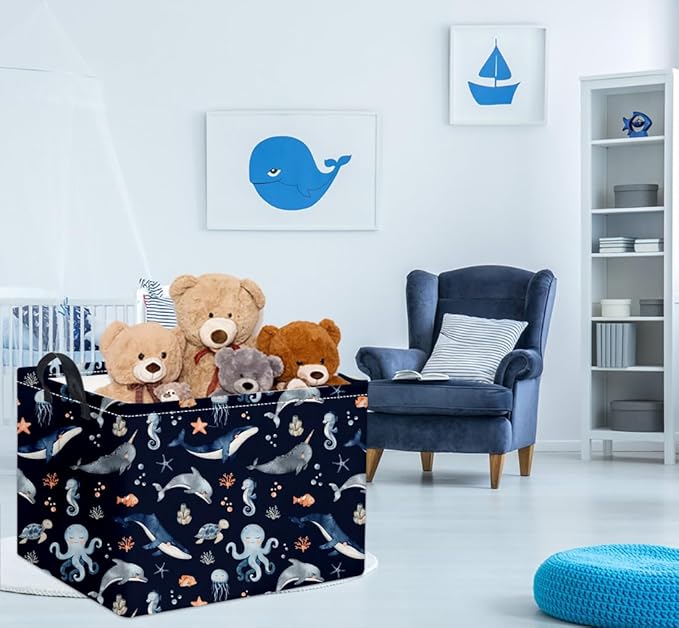 HIYAGON Rectangular Ocean Basket Kids Baby Storage Bin Toy Organizer Box for Boys Under the Sea Nursery Decor(Ocean)