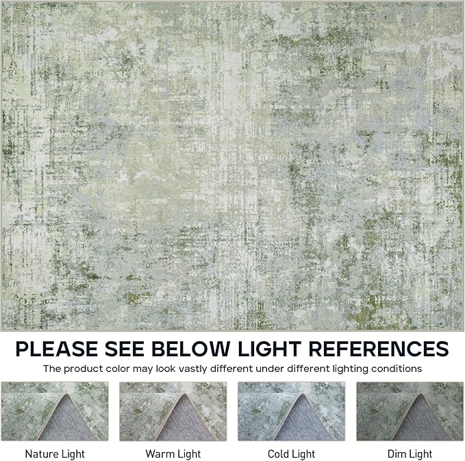 10x14 Area Rugs Large Living Room Rug Washable: Modern Abstract Rug Indoor Modern Carpet Non Slip for Dining Room Bedroom Nursery Home Office Green
