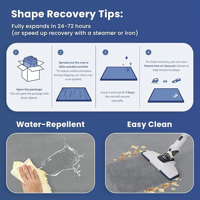 - 【HOW TO CARE FOR YOUR MAT】: Our 71×59 inch foldable kids' carpet is designed for easy storage. You can roll or fold the mat and tuck it away in a wardrobe or corner. When you first open it, you may notice creases, bumps, and compression; don’t fret, this is normal! We recommend steaming or ironing it to help restore its smooth surface