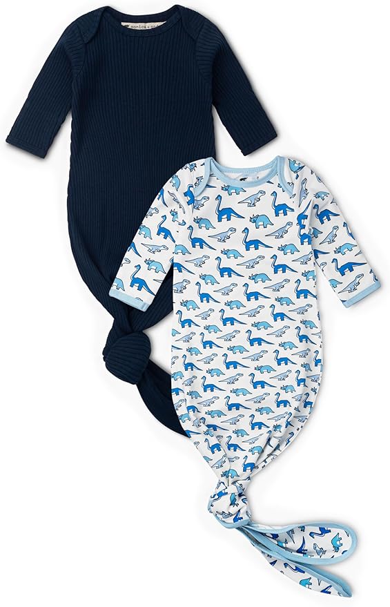 - Introducing our 2-pack of the ultra-comfy knot it gown, so cozy that our 6-month-old model couldn't resist dozing off! The best part: an adjustable tie for easy diaper changes!