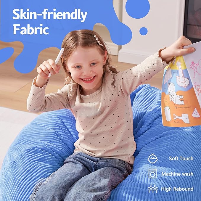 - Removable and Washable Cover: The cover of bean bag chair is removable and washable for further care. It is made of breathable premium dutch velvet with fine texture, soft and skin-friendly from touching. It is also anti-pilling and not easy to fade. You can easily put the beanbag cover into washer to clean it like new. Moreover its double stitched seams and hidden double-pull zipper ensures for super durability & strength.