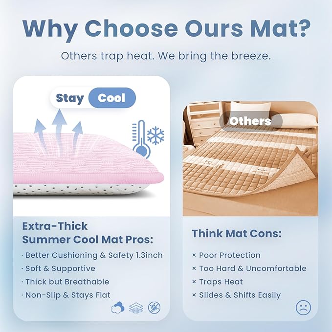 Baby Play Mat for Summer, 1.3 Thick Extra Large Memory Foam Cooling Floor Tummy Time Mat, Soft & Breathable, Non-Slip Rectangular for Toddlers’ Playtime & Rest(Pink,79"x118")