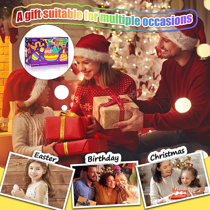 12PCS 3D Printed Dragon Eggs with Dragon Inside, Unique Fun Gifts Cool Stuff Cool Gadgets for Men Teens Boy Gifts, Mini Articulated Easter Basket Essentials for Kids