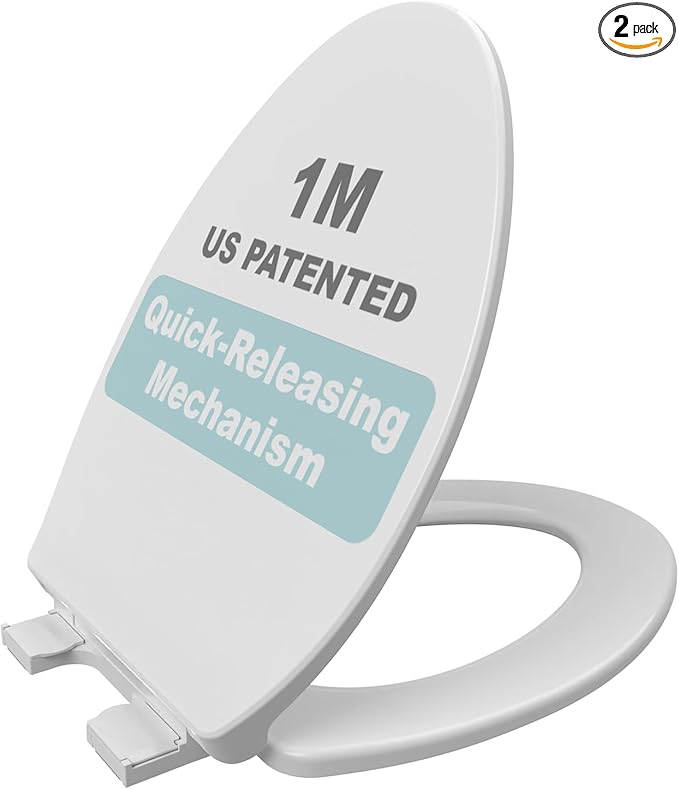 1M Soft Close Toilet Seat Elongated, Patented Quick Releasing for Easy Cleaning, Anti-Wiggling Design, Easy Installation (2PCS Pack)