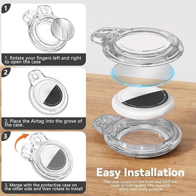- Easy Installation: No complicated operation is required, and you can fix AirTags in the Holder in a few easy steps;[Tips]: The specific installation steps can be seen in the picture; The protective cover of the Apple Airtags keychain will not affect the touch screen and shield the signal; Whether it is finding lost items or remote tracking, it can be easily achieved