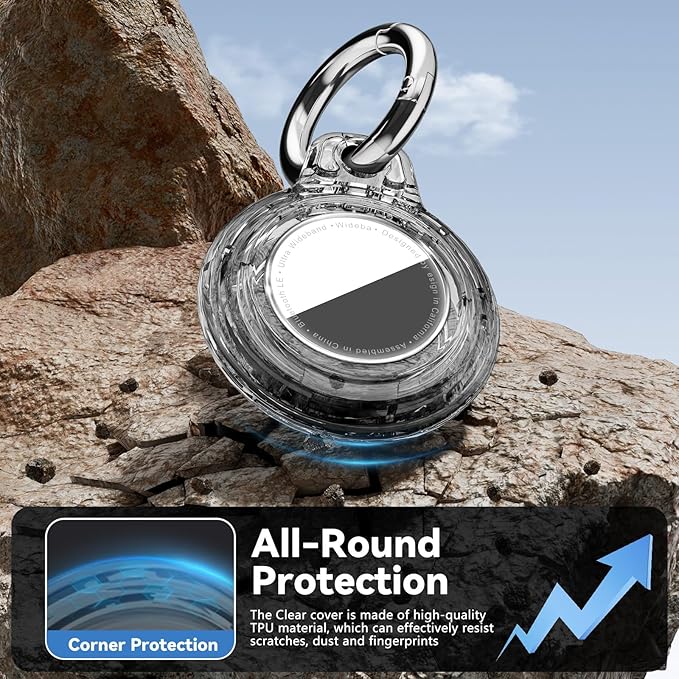 - Durable Material: This AirTags Keychain holder is made of a high-performance PC shell and an embedded TPU clear cover, providing 360ยฐ protection for your AirTags; It can protect the air tag equipment from falling from a height of 10 feet, effectively preventing drops, shocks and scratches