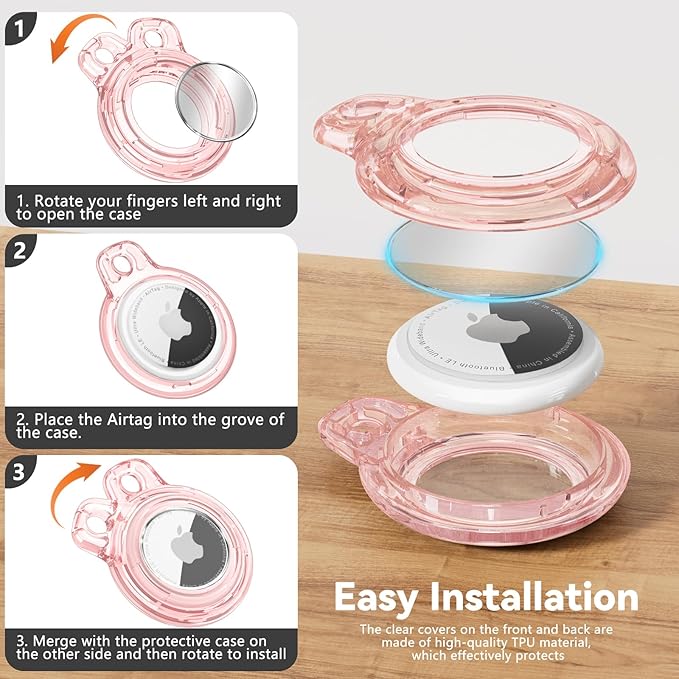 - Easy Installation: No complicated operation is required, and you can fix AirTags in the Holder in a few easy steps;[Tips]: The specific installation steps can be seen in the picture; The protective cover of the Apple Airtags keychain will not affect the touch screen and shield the signal; Whether it is finding lost items or remote tracking, it can be easily achieved