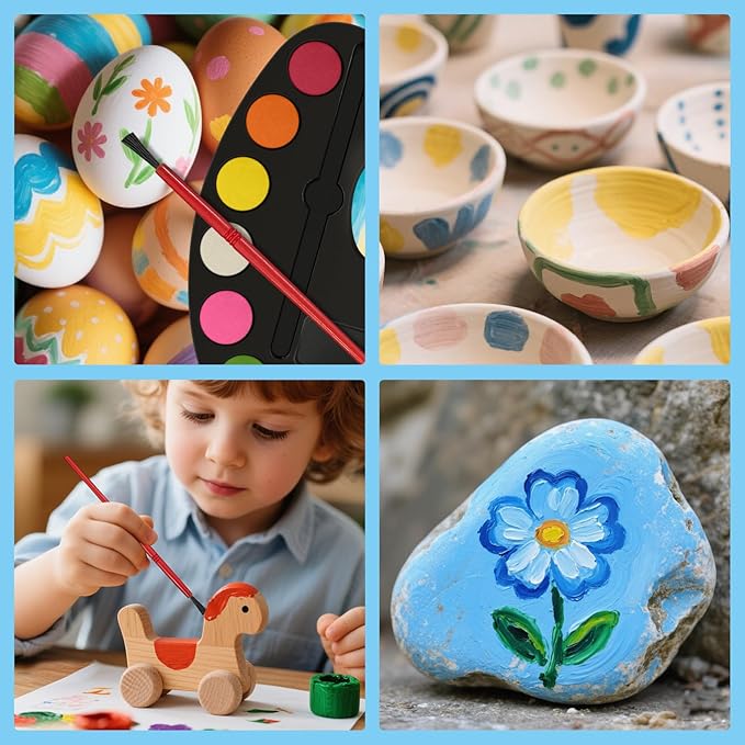 - [Multi Purpose] Whether you use it to create colorful paintings or paint on crafts made of different materials such as stone, glass, ceramics, clothing, etc., these watercolor paints are versatile tools. Watercolor paint set is perfect for use at school, home, painting parties and more. It's also a perfect gift for little kids, teens, and beginners.