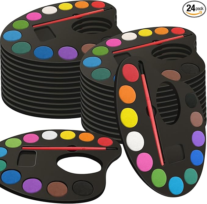 24 Pack Watercolor Paint Set Bulk, with 12 Vibrant Colors and 24 Brushes, Washable Water Color Paint Sets for Kids and Adults, Ideal Gift for Art Party Favors, School Classroom Supplies