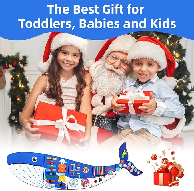 Whale Busy Board Montessori Busy Board, Sensory Toys Toddler Toys Sensory Wall Activity for Toddler- Preschool Learning Panel Center for Kids 3+ Year Old Boys Gifts Girls Gifts(Birthday Christmas)