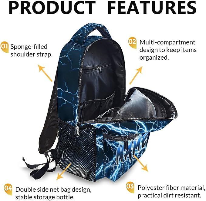 - COOL LIGHTNING BACKPACK DESIGN: In addition to practical use, this schoolbag is also printed with vivid patterns, and we also offer customization options. Click on "Customize Now" to add personalized customized information to your backpack