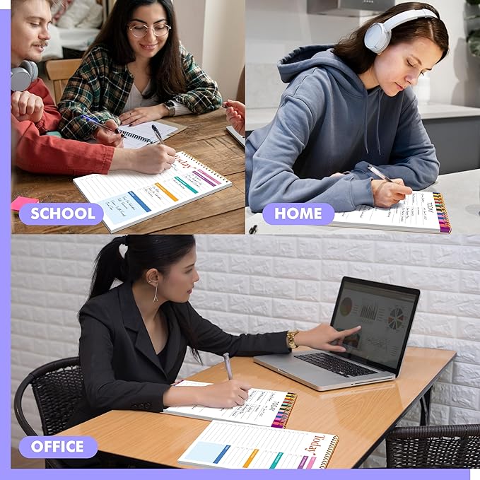 - Spiral Coil Design: The planner features a sturdy spiral coil binding, which is easy to flip open and lays flat for a comfortable writing experience. The convenient tear-off design makes it a breeze to remove completed pages without damaging the rest of your notebook—perfect for quick updates and a fresh start each day.