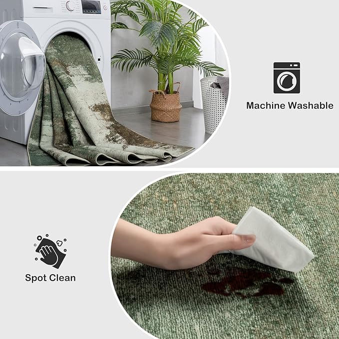 Kelarea Living Room Rug, 9x12 Rug Modern Abstract Washable Rugs, Green Vintage Low Pile Carpet, Non Slip Large Rugs for Bedroom, Dining Room, College Dorm, Home Office