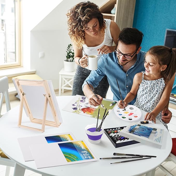 - 【Painting Set】---The kit, which includes 18 vibrant acrylic colors, 3 pcs 8x10" canvas panels, 2 pcs 9x12" canvas panels, 1 wooden easel, 1 palette, 1 cleaning cup and 8 brushes. It's the perfect way to kickstart your creative journey!