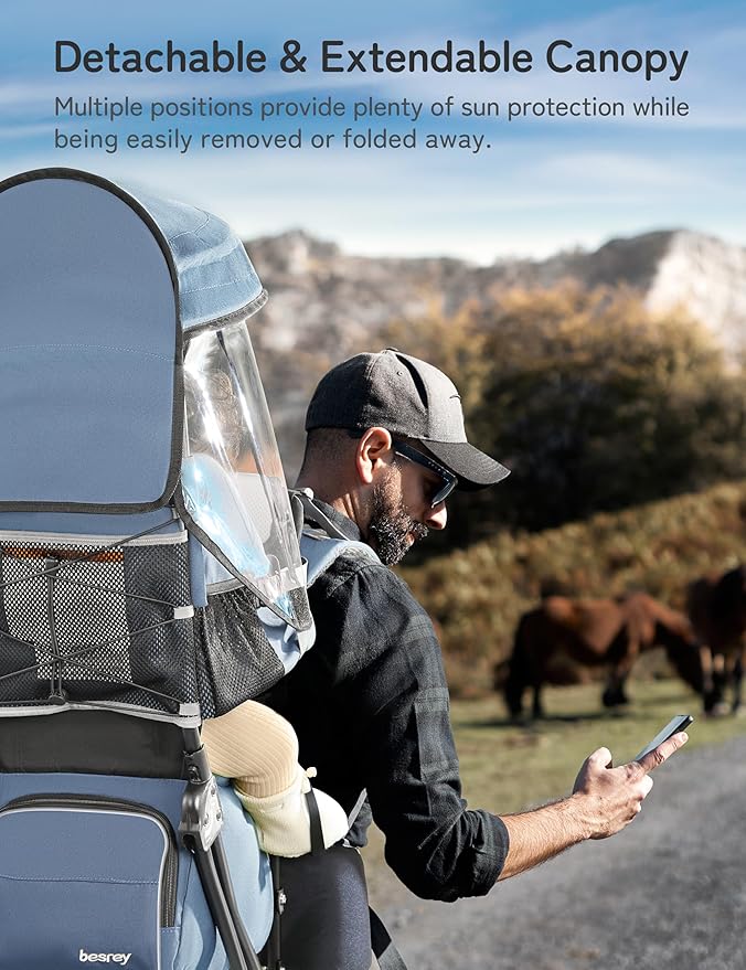 - Carry Your Kid Safely & with Ease: besrey hiking backpack carrier is specially made keeping in mind the well-being of the toddler. It has 5-point seat belts which are made of super soft material and the flexible straps and stirrups keeps the toddler in a comfortable and safe position while enjoy the trip.