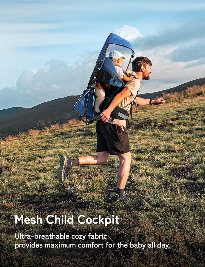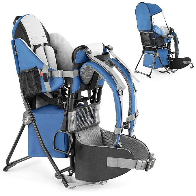 besrey Baby Backpack Carrier, Toddler Hiking Backpack with Safety 3-Height Seat, Adjustable Straps&Waist Belt, Foldable Frame Lightweight Large Capacity Child Carrier for Hiking (Klevin Blue)