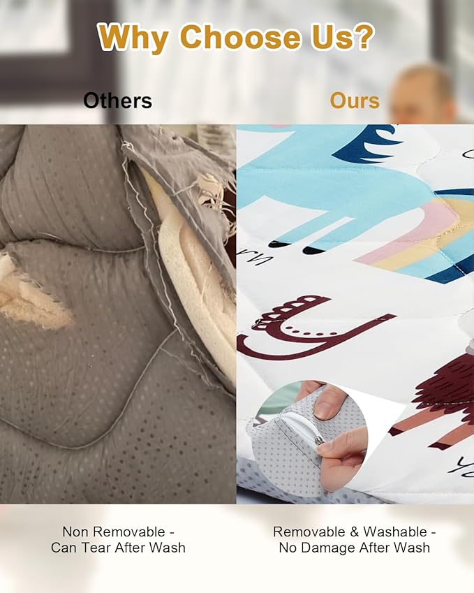 • Easy to Clean: With a removable, machine-washable cover, this play mat is designed for easy maintenance. Simply remove the cover and toss it in the washer, making cleanup quick and hassle-free.