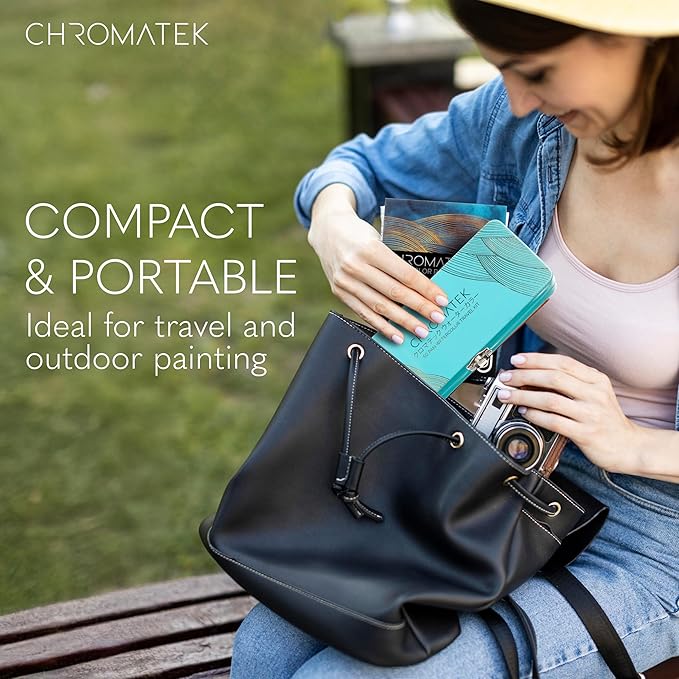 CHROMATEK Watercolor Paint Set β 50 Vivid Colors Including Transparent, Opaque & Pastel β Art Kit with Brush, Water Pen, Palette, Color Chart, Swatch Sheets, Pad & Metal Travel Case