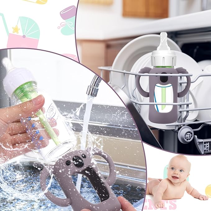 - Food Grade Silicone - Koala Silicone Baby Bottle Sleeves is made of food grade silicone,no chemical additives and BPA free, which is safe to use. The baby bottle sleeves use of anti-stick silicone material and unique shape design, will not stick to the dust๏ผhairiness,etc, which make it safer and more secure for you to use