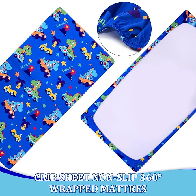 - 【BABY BOYS CRIB SET】This crib bedding set for boys is made of high-quality material ,which is softness,comfortable (can be used in multiple sizes),non-fading and non-wrinkle.The dinosaur crib bedding set includes 1 pack envelope baby pillowcase (13"x18"),1 pack fitted cirb sheet (52"x28"),1 pack baby comforter (36"x48").All pieces fit a standard size crib or toddler bed.Great use for night sleep,nap,camping and travel.