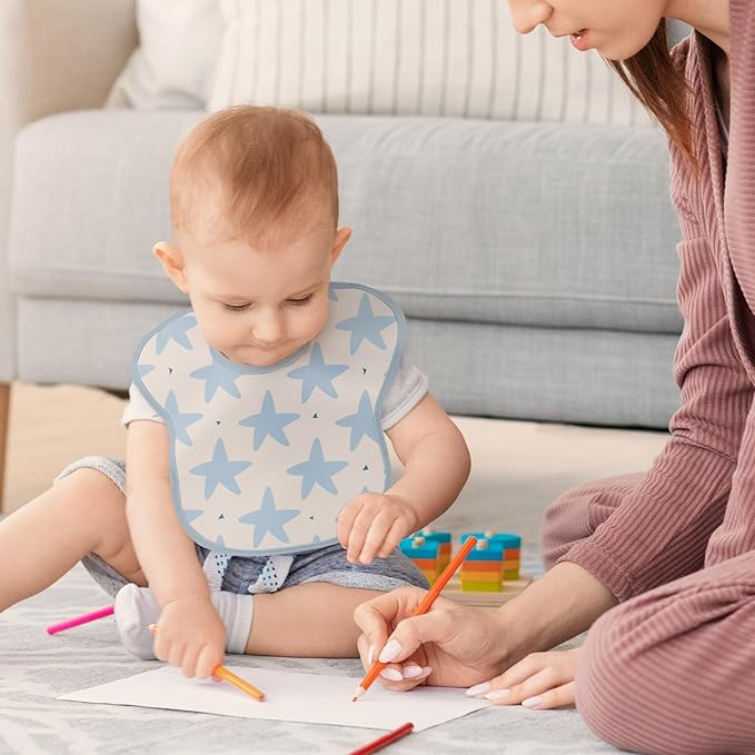 - Waterproof and Spill-Proof:Crafted from 100% polyester (softer than silicone!), these infant light blue ocean baby feeding bibs feature a waterproof design keep your baby clean and dry during self-feeding sessions.