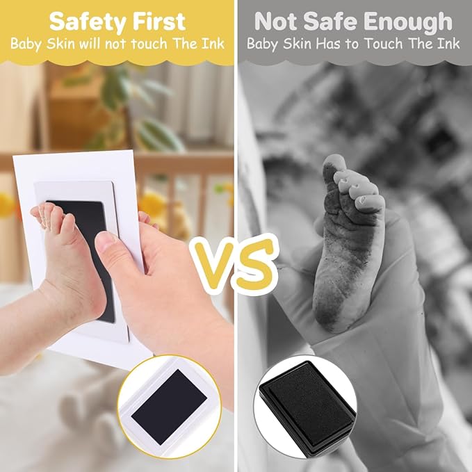 - Clean-Touch Inkless Pad:This newborn footprint kit features a mess-free ink pad that is safe for your baby's delicate skin, ensuring a clean and easy way to capture tiny hand and footprints. With the proper size of 3.7*2.3 inches, our inkless pad is perfect for newborn babyโs hand and footprints