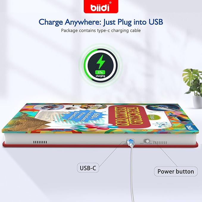 - Durable Design & Type C: Tear-resistant & waterproof book pages, carefully bound.The electronic learning toys with rounded corners that are safer for children. simple and convenient TYPE-C charging port is more reliable, and up to 6 hours of continuous use at moderate volume!
