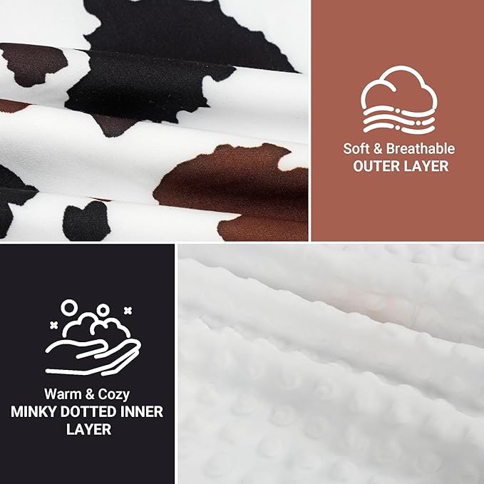 - Soft & Comfortable Baby Must-Have Canopy: Elstey infant carseat cover is crafted from durable, lovely brown black cow polyester fabric with breathable and soft minky dot lining - both beautiful and comfortable. This essential baby travel accessory for new parents features a medium thickness, making it suitable for year-round use. It provides peace of mind and a comfortable sleeping environment for your baby on the go