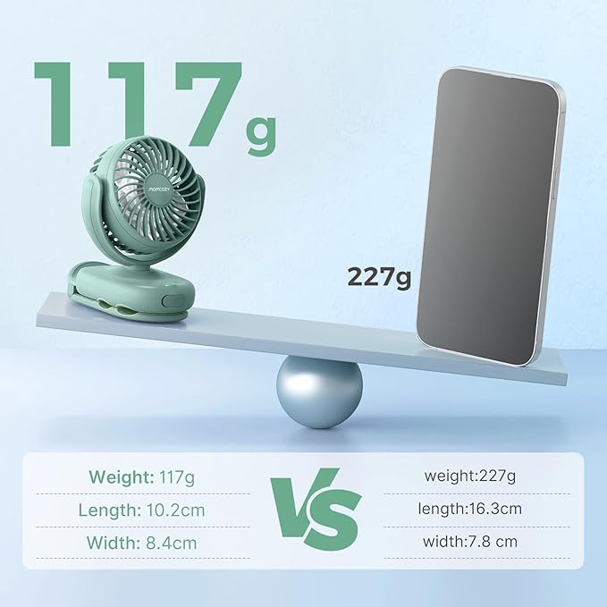 - Ultra-Light & Portable:This portable mini stroller fan weighs ONLY 0.26 lbs (lighter than an apple) to clip effortlessly onto diaper backpack, strollers, baby carriers, organizer, hight chair, nursing cover, crib. The fan gap is designed to be ≤4.5mm, allowing you to travel safely anytime, anywhere.