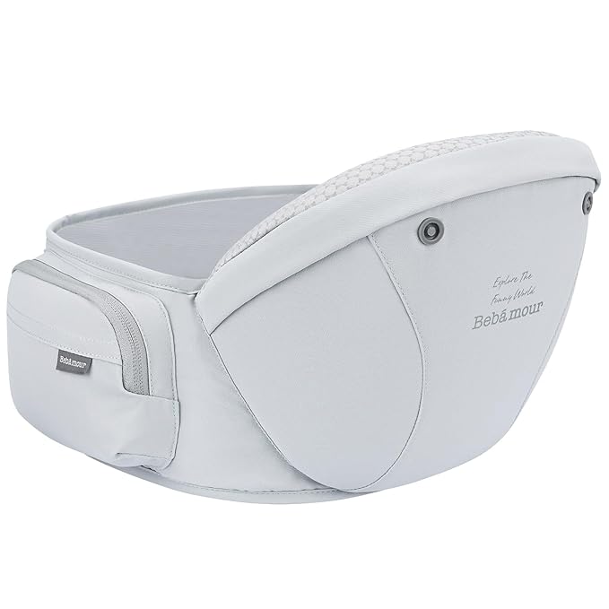 Bebamour Baby Carrier with Hip Seat,All-Position Breathable Mesh Hip Seat & Carrier 0-36Months with Head Hood, 3 PCS Teething Pads, Waist Extender,Storage Bag & Pacifier Case (Grey)