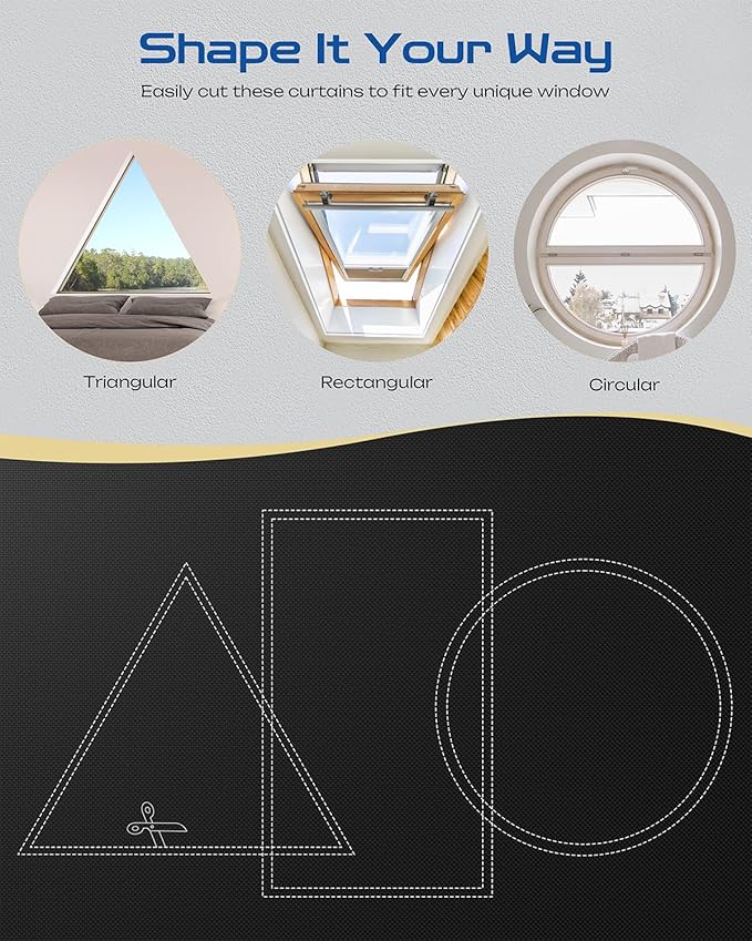- Multiple Sizes Available - Offering a range of width and height specifications to precisely fit various window types, from small bathroom windows to standard bedroom windows and large living room floor-to-ceiling windows. It is recommended to choose a width 2โ5 inches wider than the window and a length with a 1โ2 inch drape. Combined with the hook-and-loop tapes to seal the edges, it achieves 100% light-proof shading