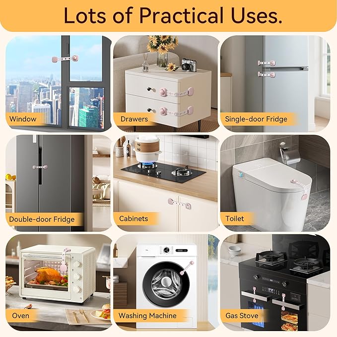 - Complete Baby-Proofing Solution: We specialize in high-quality baby-proofing-Trusted Child Safety Brand—cabinet locks, fridge locks, Toilets Locks, and more. ensure your toddler grows up safe and happy .From kitchens to bathrooms , ✔️ Drawers (knives, utensils) ✔️ Fridges (food, chemicals) ✔️ Toilets (drowning risk) ✔️ Ovens & dishwashers (burns)