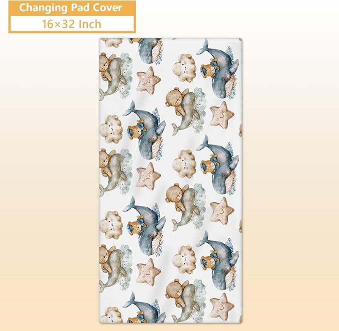 Personalized Baby Bedding Set - 5 Pcs Custom Infants Bedding Set with Infant Name - Double Layer Nursery Crib Set for Girls Boys - Customized Gifts for Toddler Baby Shower - Whales and Bears