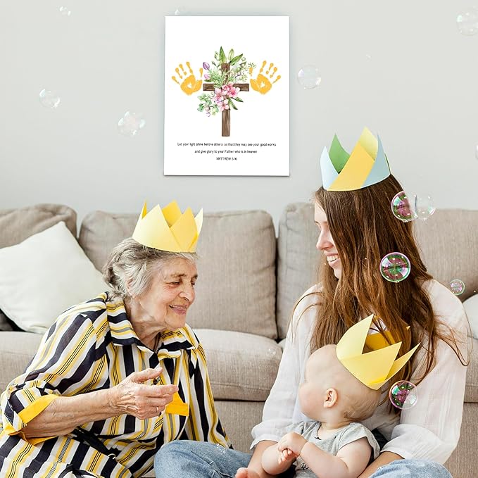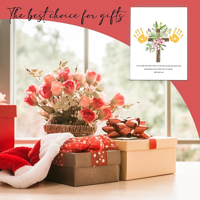SHLINCO Handprint Keepsake DIY Kit, Baby's First Holiday Keepsake, Bible Verse, Family Footprint Art for Kids, 7.8x9.8 Inch Canvas, Suitable for Desktop Wall Ornaments