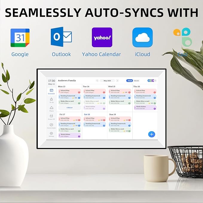 - Multifunctional Digital Calendar: Simply switch to digital picture frame mode to display all your photos and videos in a slideshow. This AI-powered touchscreen digital calendar enhances blurry images and color-corrects old photos. It also features an art gallery mode, showcasing world-renowned paintings to add elegance to your home as a digital wall planner.
