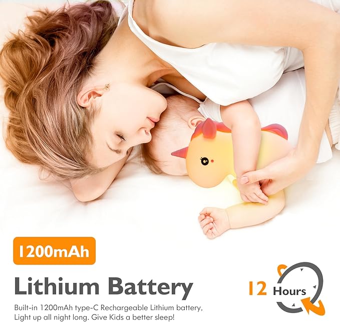 - ๐ฆ Please charge with the USB charging cable that comes standard with our product. Do not use a fast charging cable. The SANKEDOU Unicorn Night light comes with a long-lasting rechargeable battery (Superb life span and safety comes with a protection circuit) and a handy USB cable for easy charging through any USB power outlet which allows to light up the nursery for 12 hours with a single charge. Portable to take it with. Offer a long companionship for the kids. Also a 24-monthes warranty, any quality problem of all the kids night will be solved with good service. If this night light does not light up or there are other problems about the product, please contact us in time