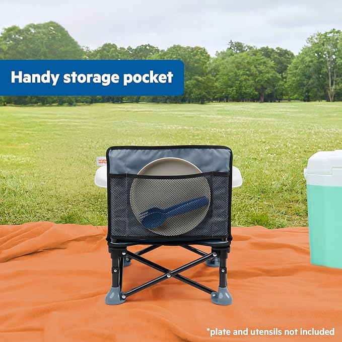 - Folds to 5 x 15 inches; easy to clean with dishwasher safe tray and machine washable seat pad; includes a rear storage pocket for little essentials