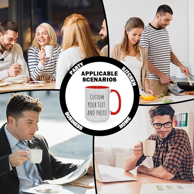 Custom Mug Upload Your Picture Personalized Coffee Mug with Photo Text Name Customized Cup Unique Ideas Gifts for Men Women Mom Dad Girlfriend Boyfriend Friend Family (Red, 15oz)
